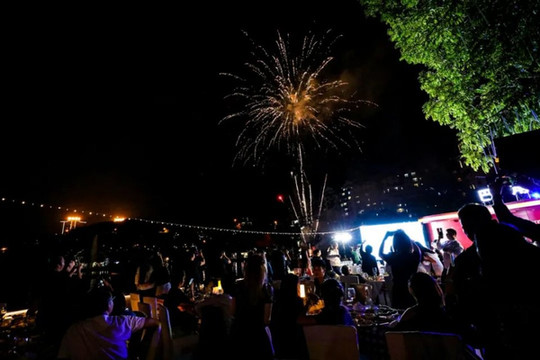 游玩之后,晚宴是在酒店内举行的,现场热闹又开心,丰富的美食还有抽奖活动,现场还放了美丽的烟火!