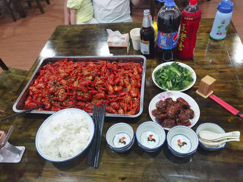 晚餐我们选择了在民宿自己煮小龙虾,虽然出来玩自己动手有点点累,但是很充实,晚上在民宿的餐厅品尝的小龙虾,那是第一次吃小龙虾吃到撑的感觉。晚饭后我们洗完澡坐在民宿门前的凳子上仰头看着星空,特别放松,大家一定想不到,我这一仰头,我看到了北斗七星,我的天啊,我第一次看的那么清晰。