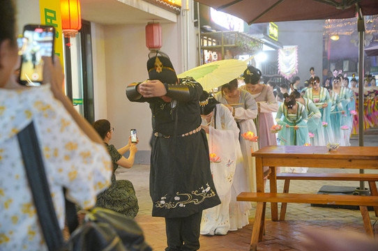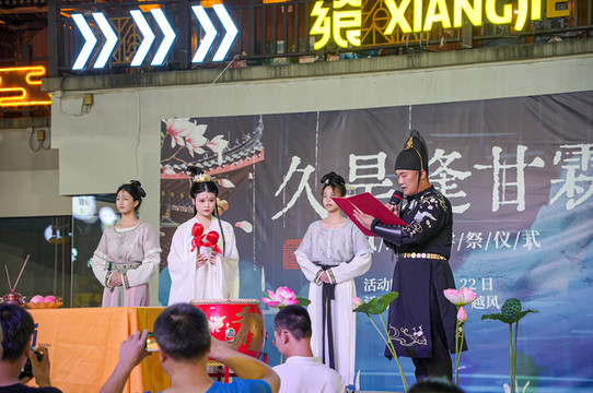 这周正好赶巧,碰上了当地一个纪念荷花神女的节日。