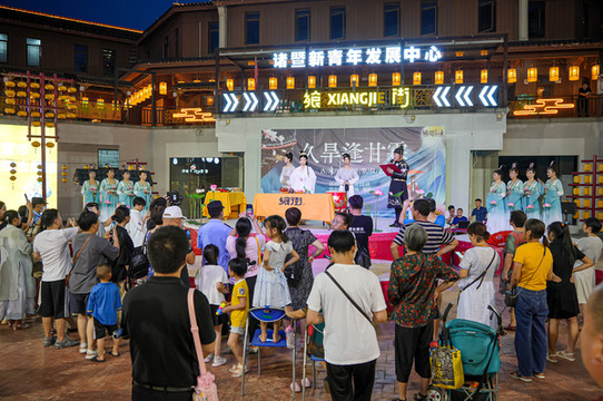 飨街以“餐饮、住宿、文化创意、休闲、娱乐、慢生活”等新型文化旅游业态为产业主导,与西施故里风景区相互呼应,互娱联动。因为在这里“吃喝玩乐”都不用愁,平时也是诸暨比较繁华的地方,而因为有官方活动的“加持”,就又更加热闹了几分。