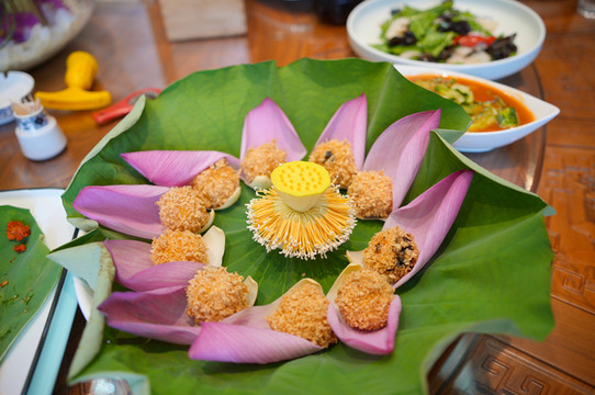 另一家是山丰人家,两家店都有一个丰字,大概都喜欢丰收吧!这家店是边上玩,正好有一处超大的荷花池,拍照的时候看到的,这家有名的是荷花宴,就点了一些吃起了。味道也是很不错,摆盘也是非常精致,那个夏日特有的银耳汤炖得真是绝了,胶质完全炖出来了,口感非常丝滑。
