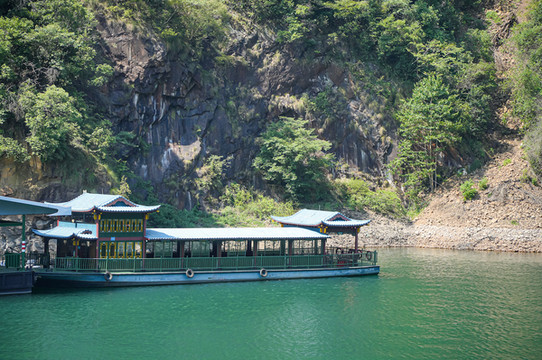 进入景区后,首先得在大坝码头乘船穿过五泄湖,天一碧码头下船后开始可步行游玩。