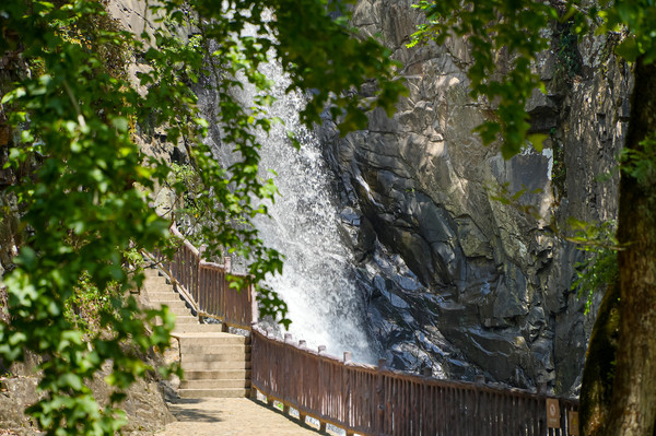 东源由下往上走,依次是第五泄至第一泄,每一折瀑布的形态各有不同,第五泄水量大气势盛,非常壮观,而越往上瀑布越是婀娜美丽,到了第一、第二泄,瀑布便非常小巧平缓了。夏天的时候,瀑布区域非常清凉,是消暑的好地方。