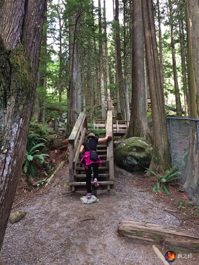 从停车场到瀑布观景台的林间甬路建有木制阶梯。