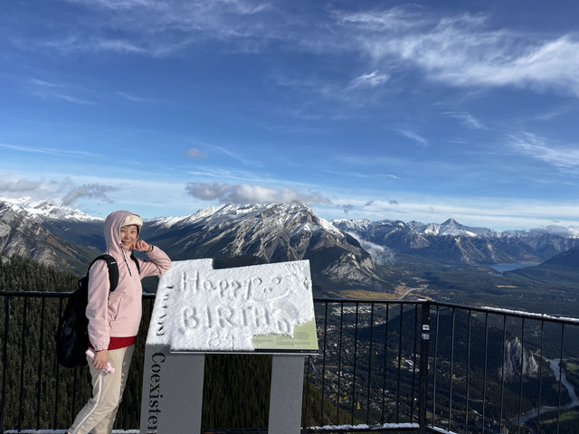 之后开车去硫磺山(Sulphur Mountain),缆车票价75加币,规定两小时上下;也可以步行一个多小时上山;