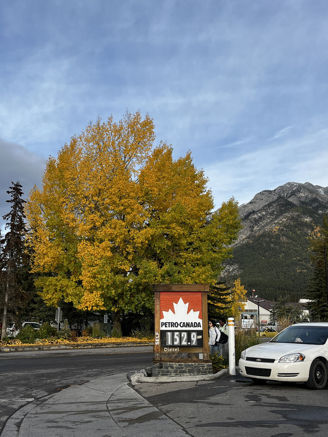 从梦莲湖出来到停车场取车,查找附近都没有房车营地,只好开到班夫小镇,找到一个可以24小时停车的免费停车场过夜,这个停车场在铁路边上,一个晚上都是火车哐当通过的噪音,建议这天提早找好房车营地,尤其是在旅游旺季(每年的5至9月是班夫国家公园的旺季)