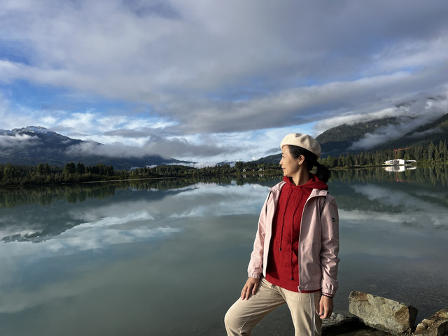 D4 从惠斯勒出发,会看到绿湖(Green Lake),湖水水平如镜,天空的白云,远处的雪山,岸边的树木倒影在水面,有观景车位可停车拍照;往前开左前方一大片海青蓝吸引了我们的目光,Seton Lake这里也是一个公园,可停车拍照也有徒步路线;拍个照继续赶路