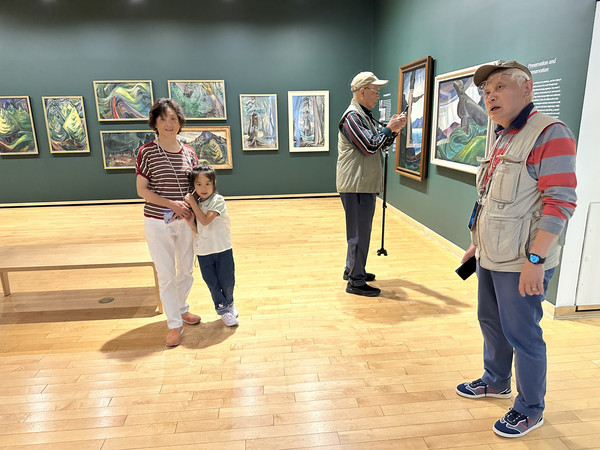我们进美术馆,工作人员见我们几位中国人年岁已大,安排我们乘VIP直达电梯先上四楼。从上而下慢慢参观。四楼展厅是加拿大艺术家艾米丽.卡尔 Emily.Carr 的展厅。
