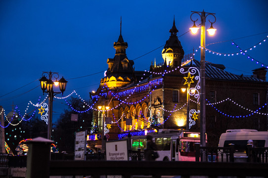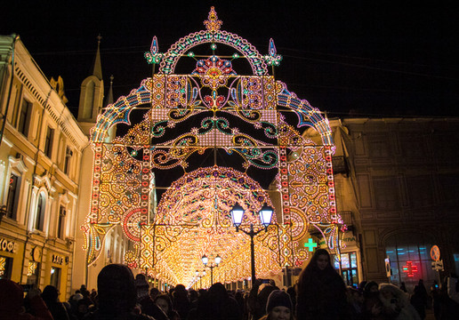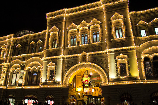 白天没有去古母百货的后门那边,晚上过来转转, 莫斯科 白天和夜晚景色差别很多,尤其现在是新年前夕,圣诞的装饰还未撤去,新年的装饰又给所有的店铺增加了一层新的色彩。