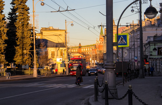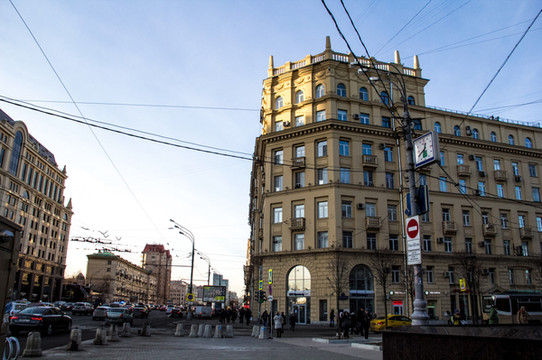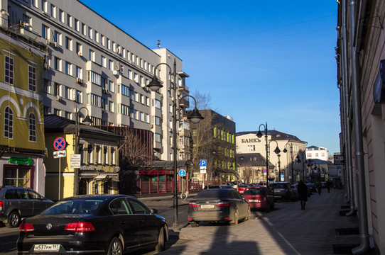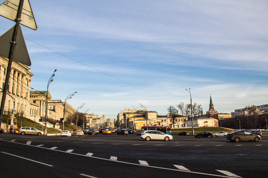 除非特别说明,本游记段落中文字所说图片都指下图。来图片模式开启,看看早上10点 莫斯科 的街头吧。画面的左侧就是红场的位置。