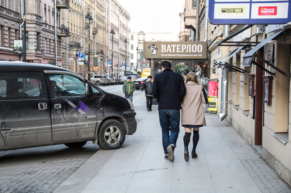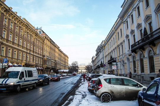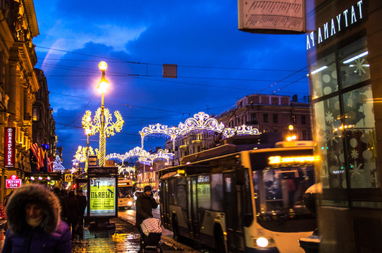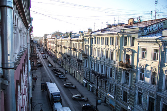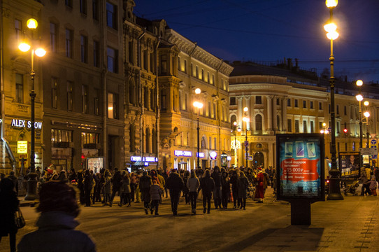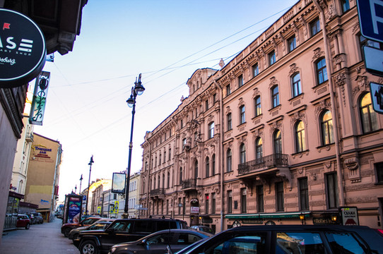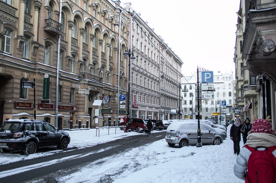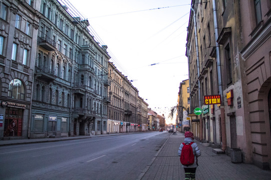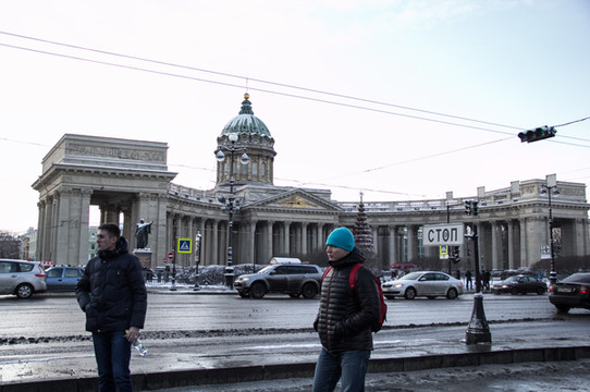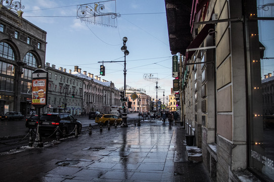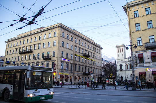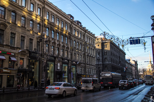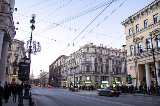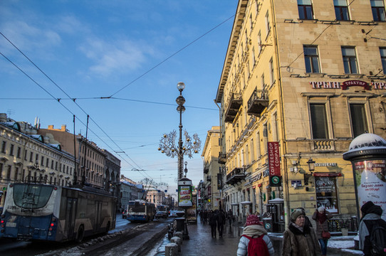 沿着涅瓦大街继续一直前行。来欣赏一下沿途景色吧。街上的人慢慢多了起来。跟早上刚到达的时候完全不一样的氛围,哈哈。彼得堡英文普及率会高一些,很international的感觉。哎!彼得堡你吓了我一大跳啊。