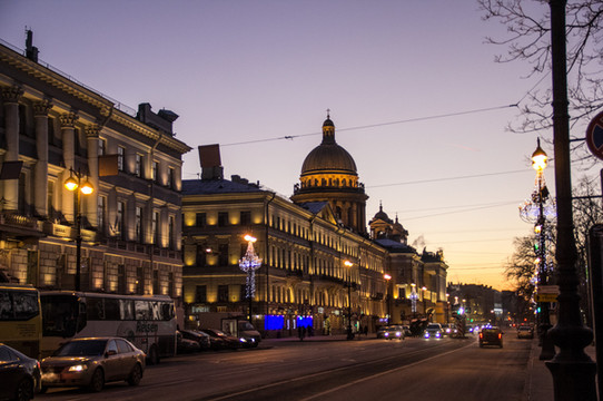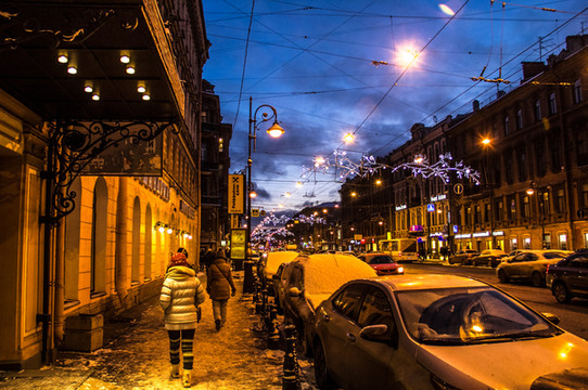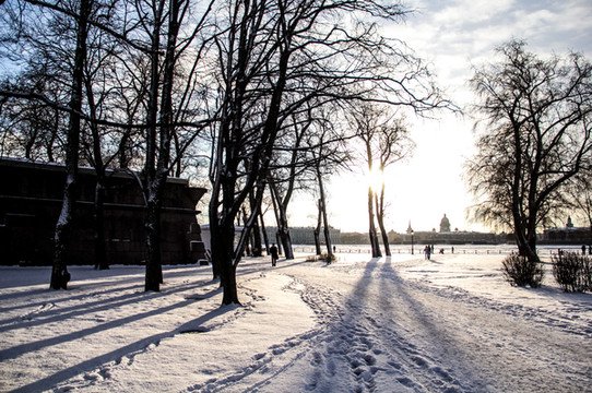 12月底的 莫斯科 和彼得堡因为纬度关系,白天短夜间长,冬天去了做好准备,每天早上10点天亮,下午4点半天就黑了。