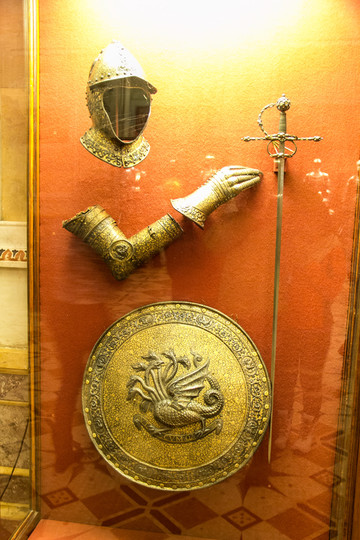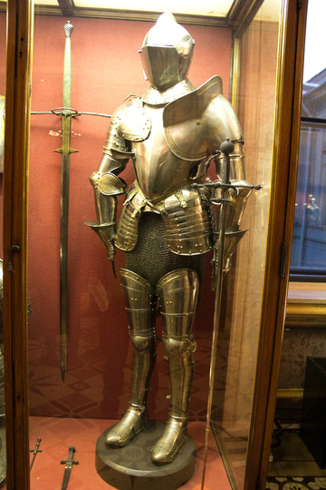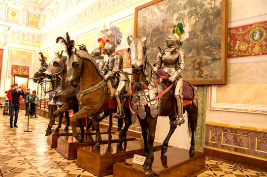 冷兵器时代。盔甲展览馆。精美绝伦。