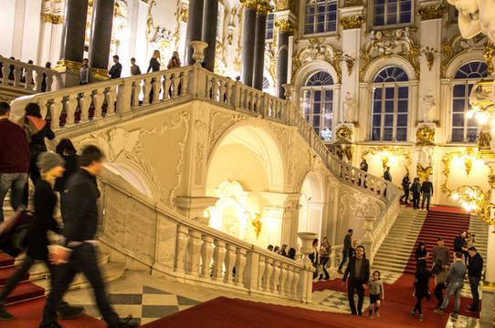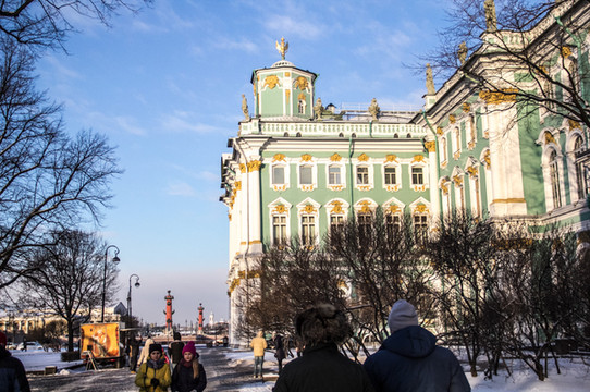 冬宫博物馆,进入博物馆广场后。有两个横着的队可以买票,但是不能用学生证。如果用学生证需要拍一条长队。会限制人流。我是溜溜排了2个小时啊。第一次感觉到冷了。站着不动冷气会穿透鞋底。脚趾头会冷。原地不停的踏步。建议如果要去博物馆请一早去排队。我是下午1多来的,快4点了才进到博物馆,出示ISIC学生卡,换免费票!也算对得起挨冻的两个小时。