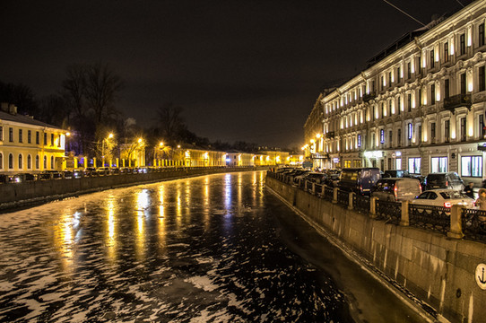 灯光璀璨配以结冰的河道,我并非专业摄影师,但是这照片却是我最喜欢的照片之一。