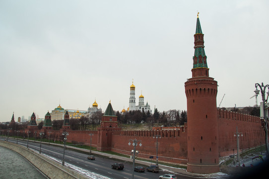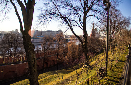 在克里姆林宫拍 莫斯科 河,草还有些是绿色的。