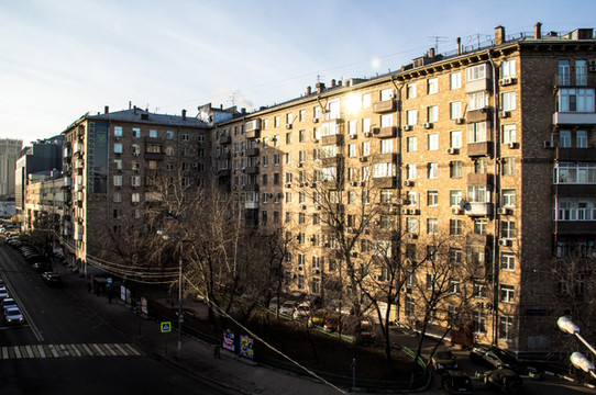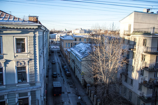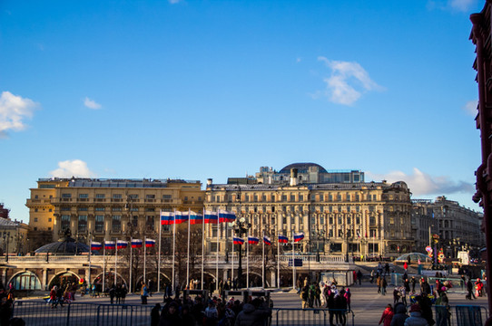 次日清晨,7点多又醒了,熬到上午10点钟吃饭出门。今天天气还是很好的。刚出酒店门随手来了一张。空气清新啊,没有雾霾!今天要去克里姆林宫转转。