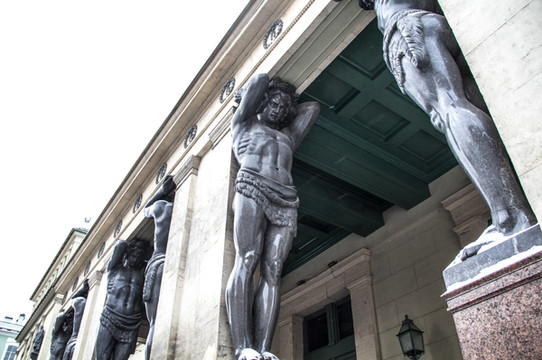 冬宫后门。巨大的雕像托起房顶。蔚为壮观。