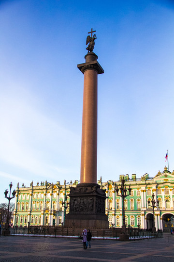 亚历山大 之柱,完全靠重力毅力在广场中心。