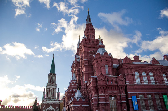 出了古母,惊奇的发现天空变蓝了,晴天了!照片中的这个建筑是博物馆,ISIC学生卡可以买便宜的票比成人票便宜100卢布。还碰到一个会说一点中文的 俄罗斯 姑娘,据说是自学中文的!非常厉害。也是头一次体会到了 俄罗斯 人的热情吧。