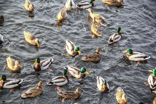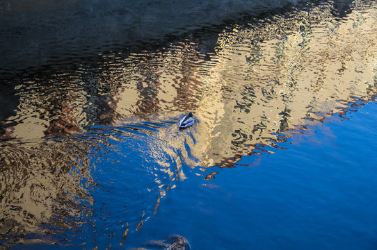 眼睛被晃花了,出了滴血大教堂,一段没有冻结的河道,一只鸭子孤独的徘徊着。