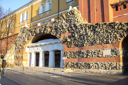 走出红场(很小,只有天安门广场五分之一大小)来到下图的这个地方,右侧是四季酒店,左侧就是 亚历山大 公园,一进去就是无名烈士墓,一年四季的长明火在熊熊燃烧。