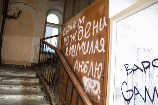 彼得堡很多地方都有这样的涂鸦,感觉到了黑帮领地。楼道里还有一个废弃的针管。我勒个去!!瞬时间觉得彼得堡不怎么安全。可是后来证明我这次的直觉非常不准。