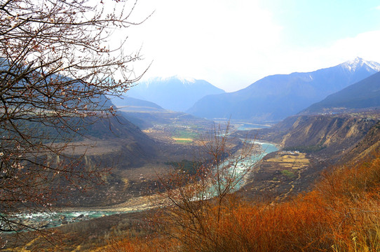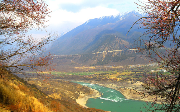 索松村成片成片的桃花树生长在雅鲁藏布大峡谷畔,近处有田野、有雅鲁藏布大峡谷,远方有雪山,相互映衬,宛若仙境,靓丽壮观。在这个时间点来到这里赏花,季节还是早了些,桃花只开了5成左右吧。但不管如何,其景色已经很美了。