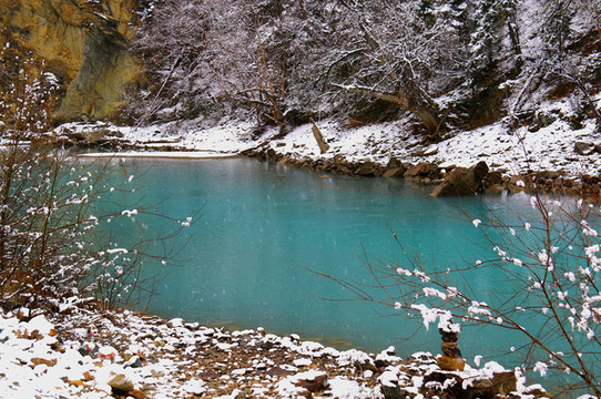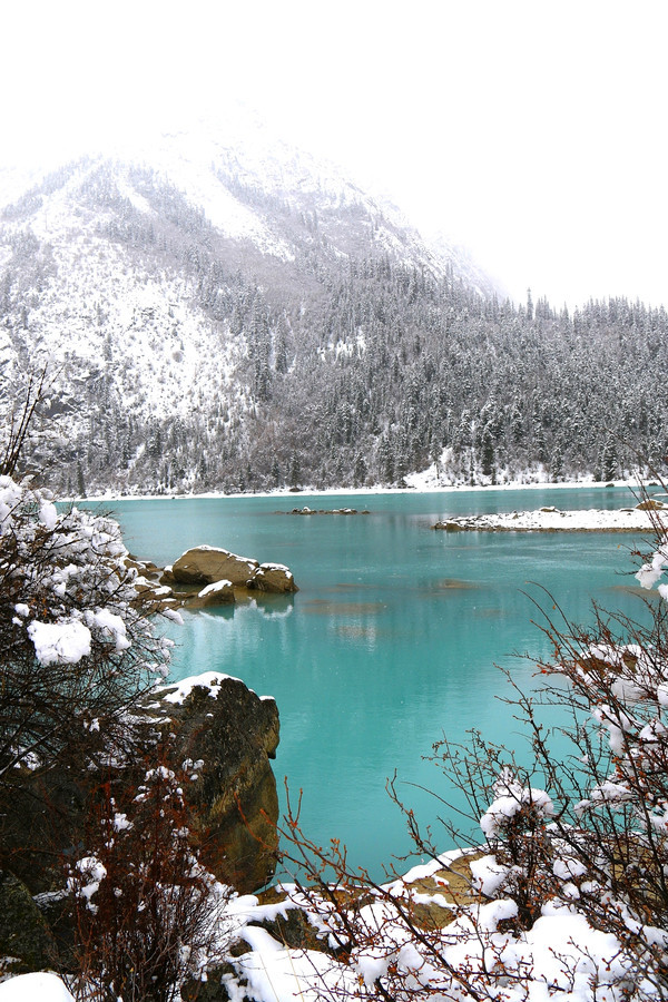 沿着318国道往四川的方向走,许多地方昨晚刚刚下过雪,沿途风光非常美,边走边玩,百来公里的路程中午才赶到。在路边小店用过午餐,就直奔乌湖然而去。无奈天气不好,在观景台那边的风很大天气又很冷,景色只是一般般,有些许失望。好在沿途的风光好美,不然的话来回走了280公里的路程就不值了。