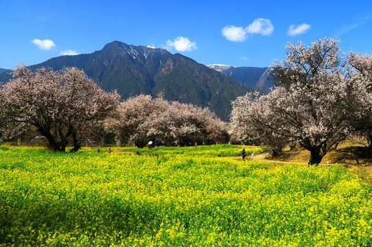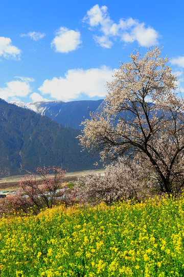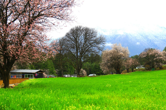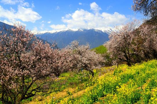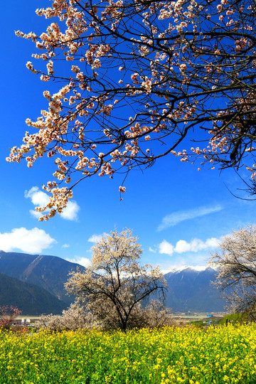 嘎拉村桃花园处在318国道沿线,距离林芝市区才十几公里,是2021年西藏林芝第十九届桃花旅游文化节主会场,有“西藏林芝桃花第一村”的美名。这里是令人羡慕的世外桃源,桃树密集,漫山遍野;桃花怒放,千姿百态。山脚下、山坡上层层叠叠,错落有致;树荫下、空旷处的油菜花,黄绿相间,生机勃勃;远处有田野、村庄、河流、雪峰,山峦交错,藏域独有;登上几层楼高的观景台放眼望去,如梦如幻的一幅幅美景映入眼帘,丰富多彩的视觉盛宴令人心旷神怡、大开眼界。