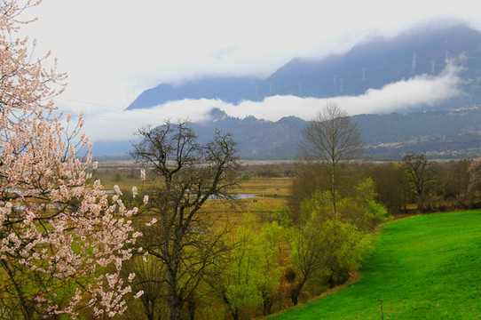 D6,3月31日(星期三、阴间小雨、4-9度)今天在波密要到离县城近20公里的波密桃花沟风景区去,这是来林芝观赏桃花的另一个热门景点。