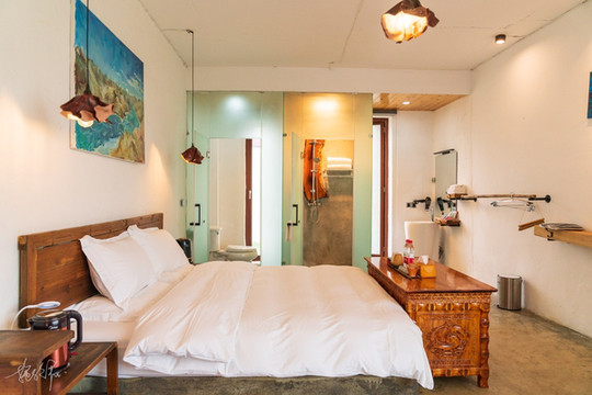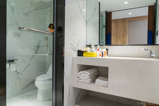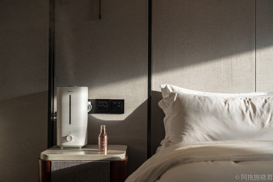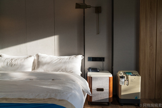房间里面更是应有尽有,供氧机、加湿器、地暖,在高原上最需要的几款东西都有。床品更是无可挑剔,大概是按照五星级的标准来采购的,卫生间是干湿分离的,我最喜欢也是最方便的设计。