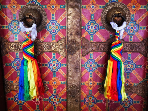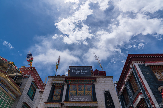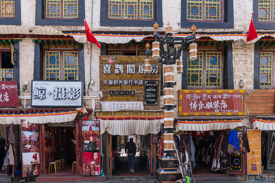 喜鹊阁也一直都是选择对象,喜鹊阁往里走就是天堂时光书店,也是一个消磨时间的地方。喜鹊阁的三楼挂满了五彩经幡,天气晴朗的时候,它们随风飘动,映衬着蓝天白云,让人心旷神怡。
