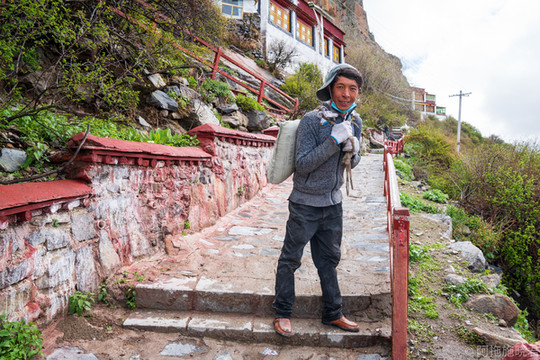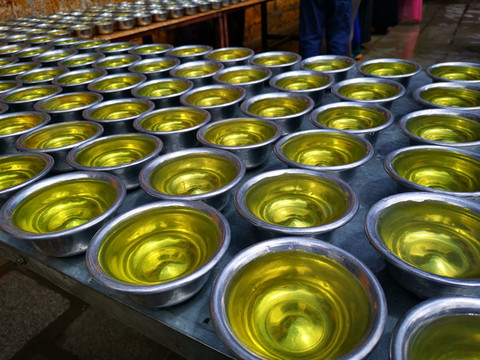但政策一直在变,遇到被封掉的去不了的地方也是正常的。院子里有许多女人,一直在清洗着酥油灯,用的是加了藏红花的水,看上去金黄金黄了,可有阵势了。