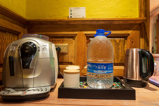 房间里的沙发更像是床榻,想要盘腿而坐,平躺着都没有问题。咖啡机、茶包、汽水,迷你吧里该有的都有。除了一个人住在这么好的房间里,感觉有点寂寞以外,其余全是享受。