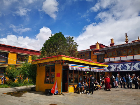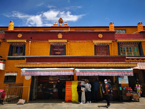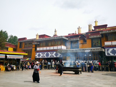 此番再来 拉萨 ,大昭寺还没有开门,也正在做一些消防的维修。门前没有了磕长头的信徒们,煨桑台也还没有开启,即便是少了一些仪式感,可人们依然是日复一日地在八廓街上转经。