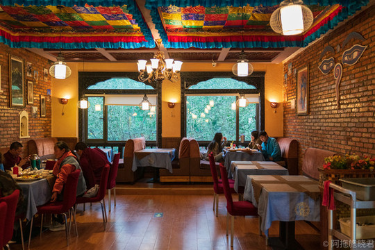 我大概是从平措康桑青年旅舍老店和 新店 就开始住起,后来平措康桑重新装修,连楼上的老鱼饭店都变成了自家的音乐时尚餐厅,每天八点天还没黑,就开始有歌手在驻唱。我也从送早餐到房间的服务到了早餐在观景餐厅享用的过程。