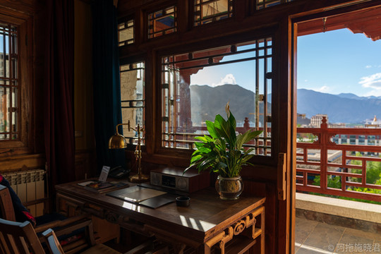 最值得一提的还是我的房间,有一个阳台,推开窗,蓝天、白云、雪山和布达拉宫就在眼前。房间很大,估摸着有八十平,独立舒适的全天候供氧的卧室,采光超级好的客厅,还有一处写字桌能让我静心写作。