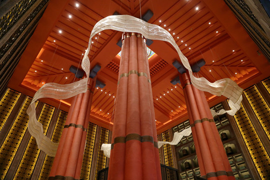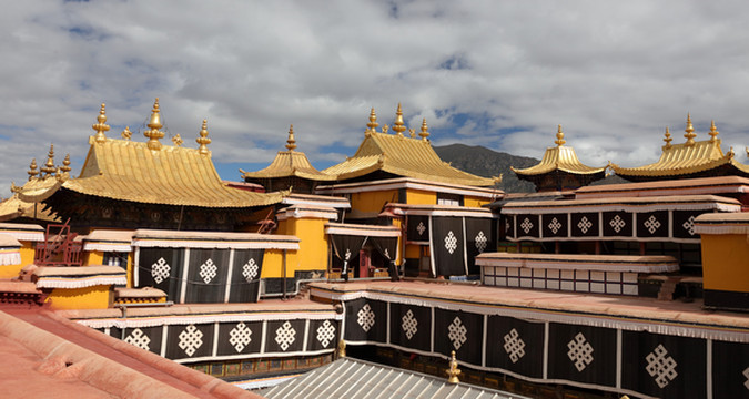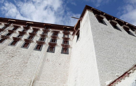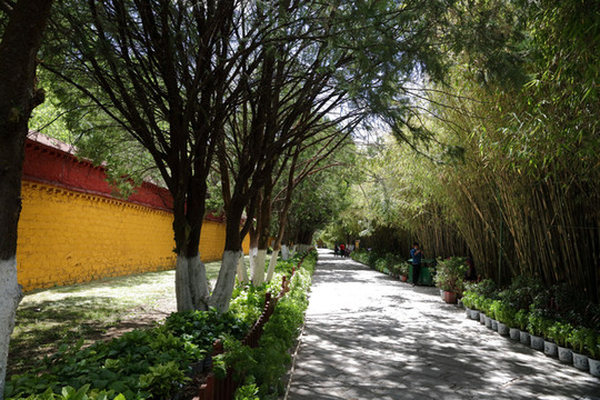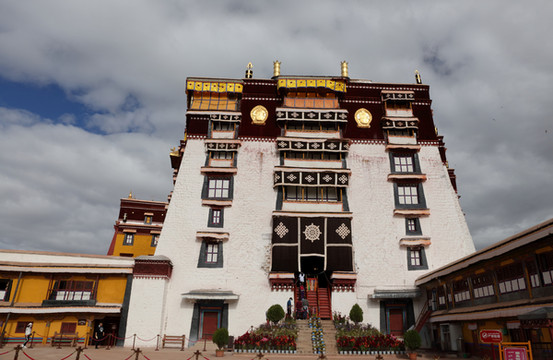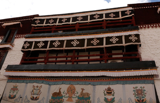 第十三天上午参观布达拉宫。布达拉宫只开放了很小的一部分,集中在红宫,必须跟随导游的带领,一个多小时回到原地。这是一路上人口最密集的地方,经常被其它团队截住而找不到自己的导游,跟上导游有时也因为人多声杂而听不见她在说什么。乱七八糟地看了檀香木观世音菩萨像(在此接受了僧人送的哈达)、灵塔殿、坛城殿等好多殿,绕来绕去找不着北,宫里光线不好,又不能拍照以便日后作个参考,所以回来就忘得差不多了。能记住的是五世dalai灵塔上一颗世界上最/大的钻石,还有天然檀香木观音像,未经雕琢,但实在是太小太远了,又在玻璃匣里,根本没看清。红宫的外墙极特殊,叫白玛草墙,是用一种小乔木经过复杂工艺加工而成的,重量轻又保暖,还能抓箭。布达拉宫保存了大量文物、塑像、唐卡、壁画、经书等,还有灵塔,有个说法黄金在布达拉宫里是最不值钱的。