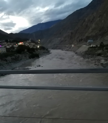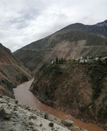 吃过午饭继续上路,走了一个多小时前面路断了,只好返回走省道,王总把我们送到岔路口挥手告别。我们按导航走到一处隧道,隧道施工不通,又折回走老路,老路经历多次塌方,又年久失修,非常难走,时速能到20公里就算快的。不知翻过了几座山还没出四川,天渐渐黑下来,团长说如果今天赶不到德钦就在奔子栏镇留宿了。好在儿子小两口今天从云南先行到德钦等我们,他们说上了214省道路就好走了。到奔子栏已九点多,过了金沙江的桥就进了云南214省道了。