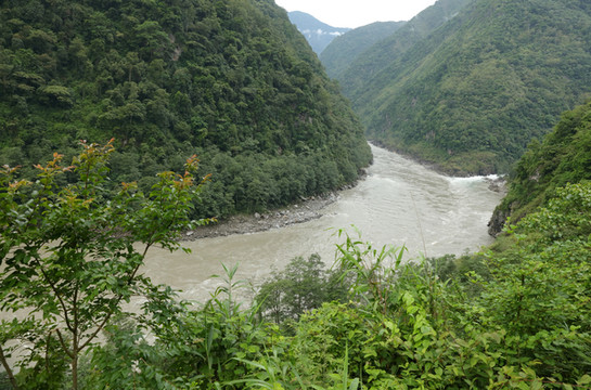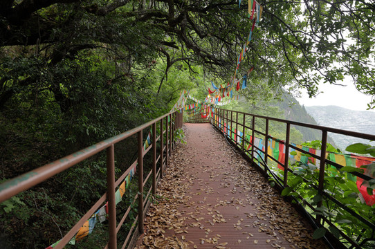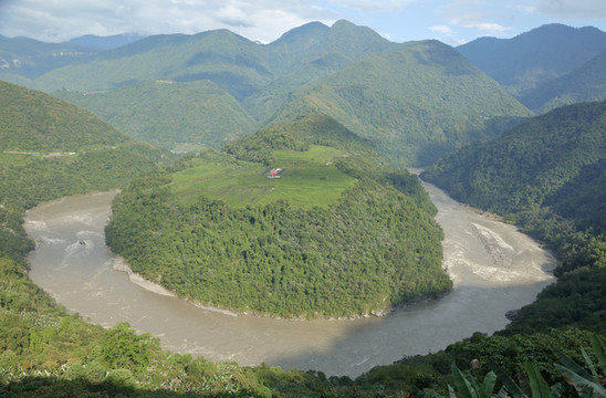 下山继续沿唯一道路南行去果果糖大拐弯。这个拐弯有点小家碧玉的感觉,秀气优雅,树木葱郁,造型完美,气魄稍欠,观景台建造得丑陋粗糙。路上过江时看到旁边有座藤桥,很精致,应该是不让用了。