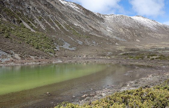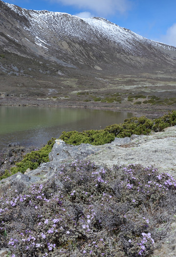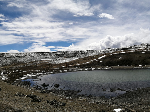第四天是最艰难的一天,我们的车出了状况:胎压报警。让团里几个明白人看了,都说胎压没有大问题,再开的时候多关注一些车况。租车时店员也说过,到高原地区气压小,轮胎会有误报警的情况。今天要去梅里雪山,王总打算带着走小路,能近100公里。路过一座不知名的山,进到里面没有公路的地方颠簸地走了好几公里,见到一处无名小湖,常年有水,平静碧绿,周围长满灌木野花,王总说他们叫它上帝的眼泪。山上有不少当地人在挖虫草,同行的买了几根,30元一根,不知成色如何。