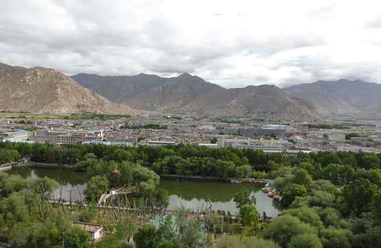 早饭后出发去最后一站拉萨。林拉高速修建不久,道路平整笔直,120公里的时速让我们这些天走盘山道的憋闷一扫而光,为了能在中午赶到拉萨吃饭,领头车开始提速,我们只能跟。结果两天后接到租车公司的违章短信。租车公司给了十天期限,十天到了收了我2300多元预罚金,说我能及时处理好再退还。这样赶,到拉萨还是一点多了。在一家挺大的酒楼吃了火锅,竟然上了海鲜刺身,现在的西藏可是今非昔比了。然后开车到河南岸的山上拉萨松赞曲吉林卡酒店入住,十座二三层小楼依山而建,大堂和餐厅单独一座楼,很漂亮也很累人,每天上楼下楼没电梯,吃个饭也要爬山。房间很大,是套房,据说是按照拉萨贵族家的样式设计的,有弥漫式供氧,在房间里可以眺望布达拉宫,尽管很小。我们入住正赶上周末,酒店赠送看戏曲表演和下午茶,四个人表演,两个伴奏,两个演唱,曲调单调,没有藏族的高亢嘹亮,倒像京韵大鼓似的四平八稳,他们不做任何解说,只是一段一段地唱,伴着简单的甩手踏脚动作,据说唱的是一些才子佳人的故事。这种戏是文/成公主入藏后开始形成的,应该和汉族的戏剧有关,主要是给贵族欣赏的。让我惊艳的是下午茶,西式糕点竟然做得这么地道,我吃了好几块,自己都觉得不好意思。晚上在酒店里聚餐庆祝全体安全到达目的地,王大姐的先生也专程飞来相聚,菜是中餐西做,主菜是牛排,团长拿出珍藏一路的威士忌名酒,再加上白酒和葡萄酒,推杯换盏,互相道谢,感慨万千。想这些人当年都是叱咤风云的人物,现在退休仍不服老,要在七十岁之前自驾雪域高原。如今如愿以偿,值得骄傲。