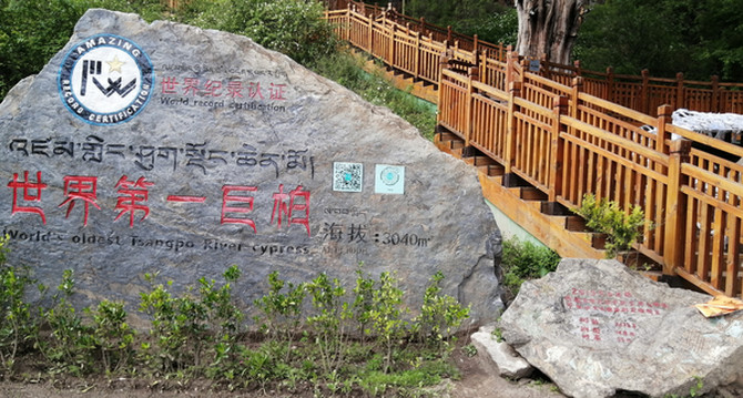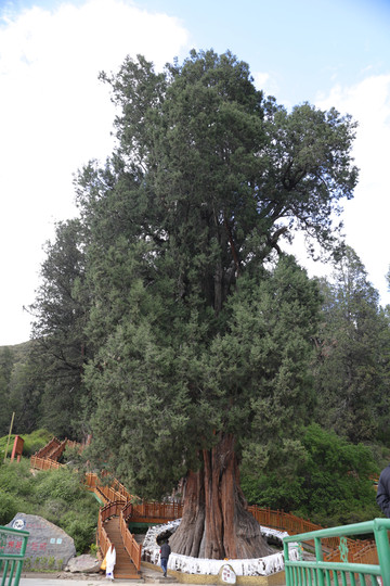 回到城里的柏树王园林拜谒3000多岁的世界第/一巨柏,它矗立在3040米的高度,树围14米多,树高50米,称世界第/一应该没人反对,园里还有许多两三千岁的柏树。