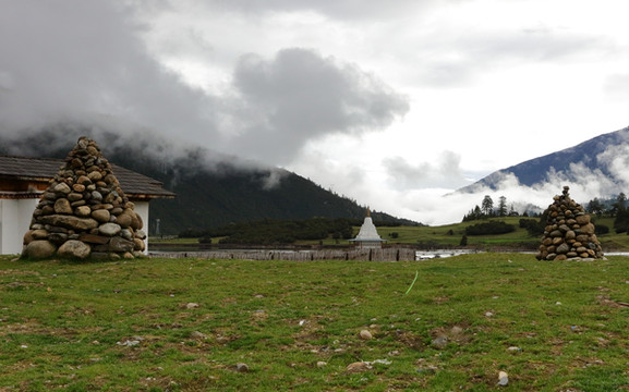 第十天上午天气不错,我们返回到波密,未做停留直奔鲁朗。又开始下雨,冒雨到达鲁朗贡措小镇林芝恒大酒店,尽管能见度很差,还是能看出小镇的美。