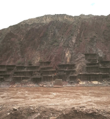 第六天进入行程的后半程——沿214省道入藏。千年盐田就在这里,很窄的一条小路,没有停车的地方,十几辆车开进来引的当地人出来围观。当地陪同指挥车辆一个个通过两条木板搭的“桥”到一个相对平整的地方停下车,走到河边的盐棚,讲解员告诉我们这里是格/萨尔/王和当地纳西族打仗争夺地盘和资源的地方,格/萨/尔王赢得了胜利,慷慨地把这个盐田让给了纳西人,所以现在这里是西藏自治区的一个纳西族自治县。盐分红白两种,白的经过更多加工可食用,红的作浴盐或泡脚用,但讲究的人现在都买商品盐吃,盐田越来越趋向于旅游业。