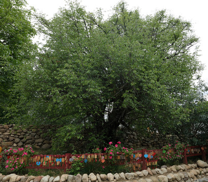 近中午时到达乡城,一棵800年的菩提树静静地屹立在村中。传说在十二世纪大宝法王到青德传/教,一次手里的佛珠线断了,佛珠撒落一地,大家帮着四处捡拾,但少了两颗,大宝法王说这两颗珠与此地有缘,后来这里就长出两棵菩提母树,藏语“恰称”意为手中佛珠,乡城因此得名。另一颗树不知所踪,而这一棵的菩提佛珠被藏族老百姓倍加尊崇,无需开光。这个小村庄给我们留下了美好的印象,街道干净,房前屋后花草茂盛,小溪缓缓流淌,一处老房子被设计师重新打造成民宿饭店皈院,非常漂亮,菜做得也清淡可口。很让人有留下一住的欲望。而且这一带是高原谷地,海拔相对低些,大片的农田沿217省道延展铺开,很是养眼。