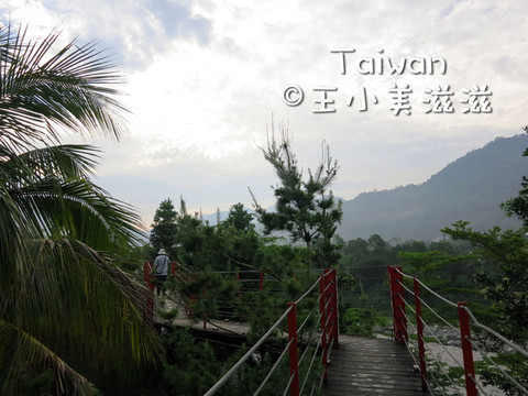 这里依山傍水,风景清幽。还有一座空中情人桥。在木桥上走走停停,一路观景,好有趣。