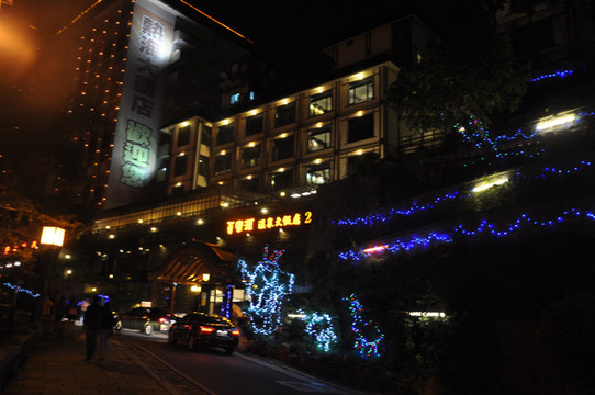 泡好温泉出来,已是华灯初放时刻