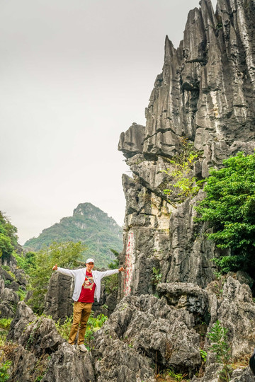 航拍看,凌霄岩的外观和其他相邻的山峰并没有太大差异,但坐船沿着地下河穿进山洞,还有攀爬那个“百步云梯”后,你就会发现一个神奇的喀斯特地貌风光。